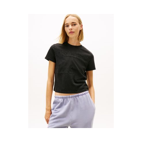 Tommy Hilfiger women's T-shirt. This acid-washed tee is made from garment-dyed cotton jersey for a soft, lived-in feel. It's finished with our embroidered tonal logo at the chest for a low-key look. Part of our Tommy Jeans collection.