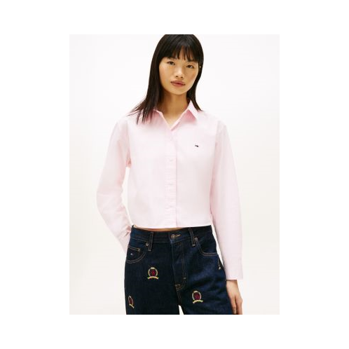 Tommy Hilfiger women's shirt. Cut in a relaxed, cropped fit, our smooth poplin shirt pairs effortlessly with trousers or laid-back denim. Part of our Tommy Jeans collection.