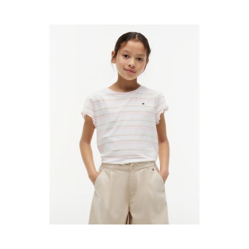 [US] TOMMY HILFIGER Kids Stripe Lettuce-Trim Sleeve T-Shirt
