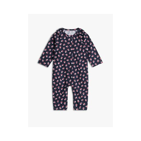 - Button placket, snap closure at legs, ruffle details at the shoulders, long sleeves.