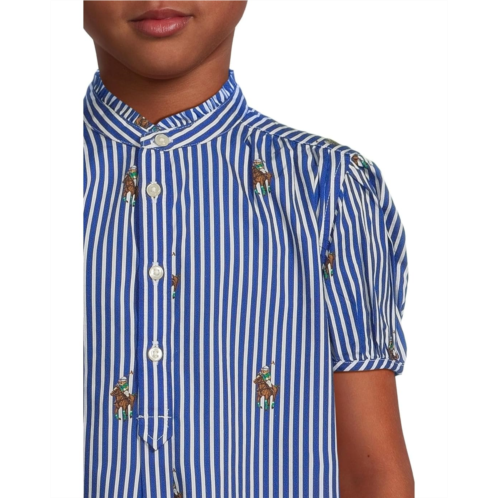 [US] Polo Ralph Lauren Kids Polo Bear Striped Cotton Poplin Dress (toddler/Little Kid)