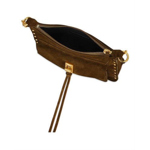 - Elevate your style game carrying the Rebecca Minkoff Darren Mini Top Zip Xbody. This chic crossbody bag is crafted from luxurious leather and punctuated with dainty studs along the sides for a touch of edgy flair. The detachable, adjustable shoulder strap features studded trim, while the zippered top closure with leather tassels adds a stylish finishing touch.