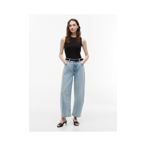 Fit : Sits above the waist, cut with a barrel leg.