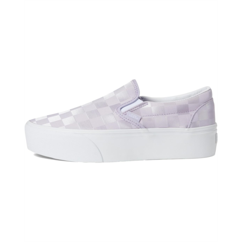 The Vans Classic Slip-On Stackform shoe features a round toe design and cushioned insoles for all-day comfort. Brand detailing appears on the heel counter, while the synthetic outsole delivers durability and traction. With its platform heel and signature Vans attitude, the slip-on footwear brings old-school skater style into a modern, trend-forward look.