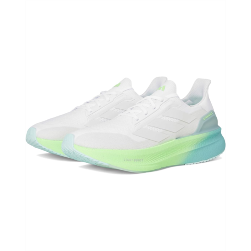 Chasing new PRs feels easier in these adidas Running Ultraboost 5X Running Shoes. These lightest BOOST yet deliver continual energy return across the miles, so you feel fresh from start to finish. Add the Torsion System between the heel and forefoot for stability. The lace-up sneakers are crafted with a textile upper, textile lining, and a rubber insole. The signature three-stripe branding on the low-top silhouette, makes these sneakers a comfortable wear for walking or running.