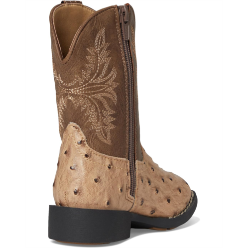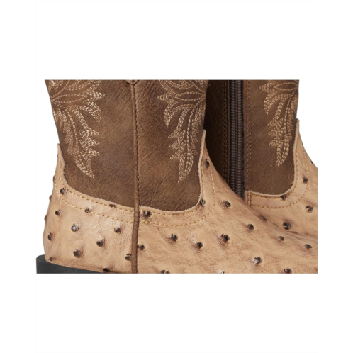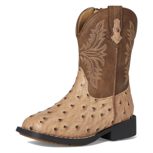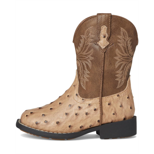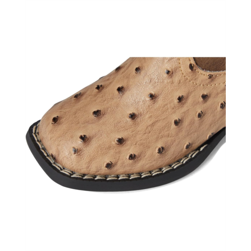 Faux-leather upper features a faux ostrich vamp and western stitching for added appeal.