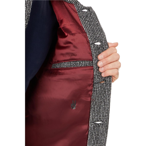 Crafted with woolen blend fabric, the John Varvatos Evans Jacket O2125W24 boasts a button-down placket that offers a poised look. The allover textured coat has a collared neckline, long sleeves with buttoned cuffs, and two button-flap patch pockets at the chest.