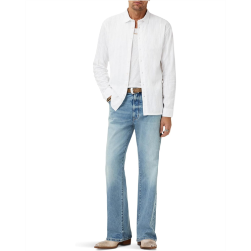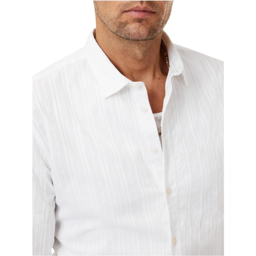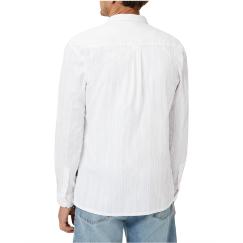 The art of understated rebellion donning the John Varvatos Roman Shirt W989F25. Crafted in a dobby stripe weave that adds subtle texture and understated sophistication, this shirt blends edge and elegance effortlessly. The collared neck and button front closure lend classic structure, while long sleeves with buttoned cuffs give you versatility from boardroom to bar. Designed with a slightly oversized fit and straight hem, it layers like a dream or stands solo with quiet confidence.