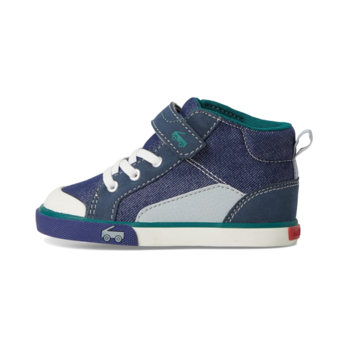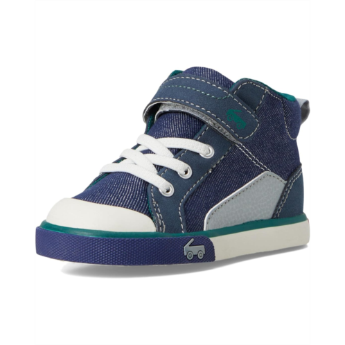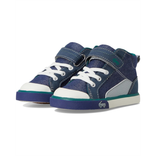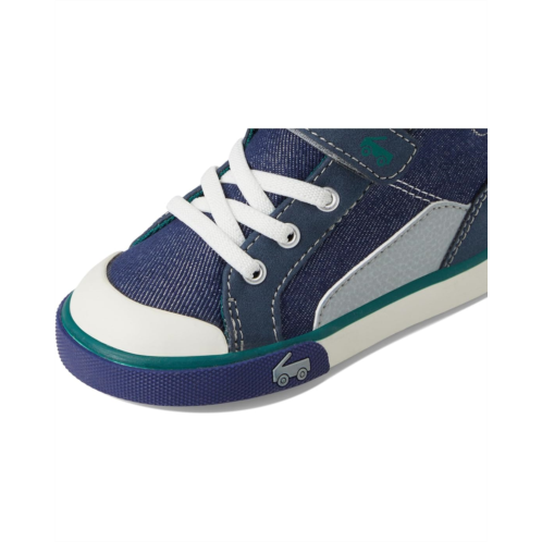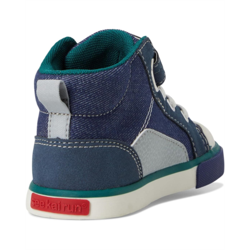 Kick everyday style into high gear with the essential See Kai Run Dayton High-Top Sneakers. It designed with a cool mix of materials, breathable interior, and extra traction to ensure his playground style is at the top of its game. The sneakers feature a denim upper with nubuck-feel overlays, a round toe shape with rubber toe cap for protection, a breathable recycled mesh lining, and removable leather-lined footbed that is contoured for all-day comfort. The hook-and-loop strap & faux elastic laces allow for secure fit and custom adjustability while classic SKR fit gives feet room to move and grow.
