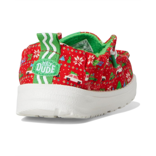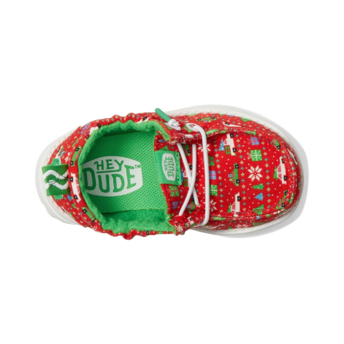 Dress up your junior in the holiday season with the cute Hey Dude Kids Lildude Holiday Sweater Loafers. Designed with an allover Christmas printed canvas upper, cotton lining, EVA insole, and EVA outsole, these slip-on style loafers with lace-up details ensure both comfort and durability.