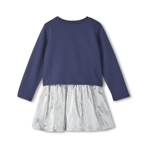 Exude elegance and grace donning the Hatley Kids Headphones Novelty Skirt Dropped Waist Dress, crafted in a cotton-polyester blend and a below-the-knee silhouette. The pull-on style dress features a crew neckline, long raglan sleeve dress with dropped waist, blingy headphone motif on the front, and skirt overlay gathers at waist seam.