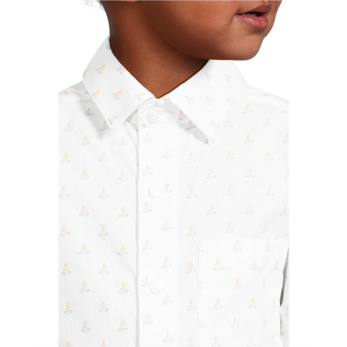 Your little one is ready to rock a sweet formal look wearing the Appaman Kids Standard Shirt. The collared shirt features a full front-button closure, long sleeves with buttoned cuffs, one patch pocket on the left chest, a fun allover print, and a shirttail hem.