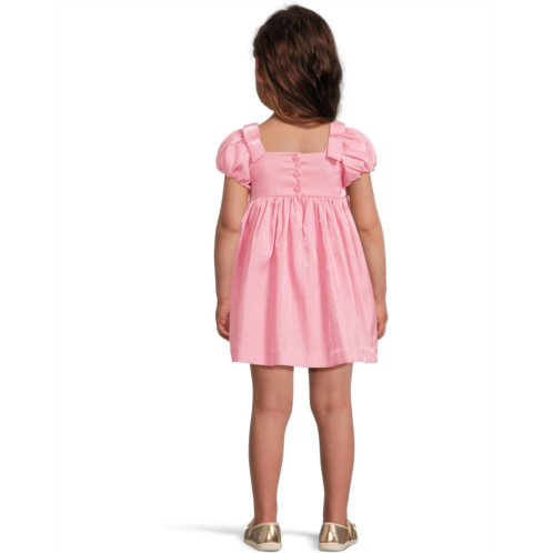 Add a bit of sparkle to your little one's look with the Janie and Jack Shimmer Dress. The knee-length dress features a squared neckline with ruffled details, a back-button closure, short puff sleeves, an allover shimmer detailing.