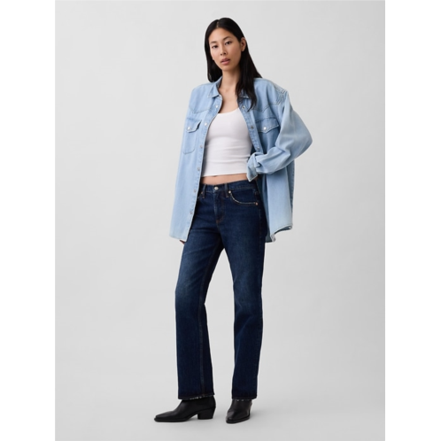 - Fit: A full-length jean that's fitted on the waist & straight all the way down.