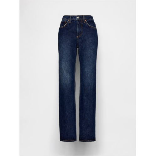 - Look: A classic five-pocket jean in a dark indigo wash.