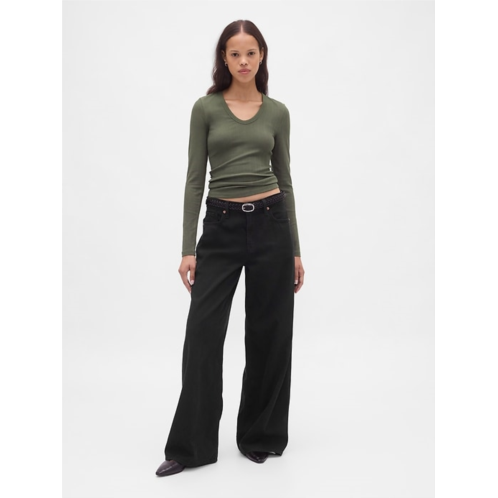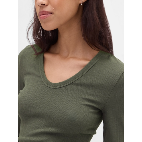 - Soft, stretchy cotton-modal blend sheer ribbed knit T-shirt in a slightly cropped length.