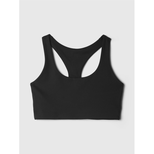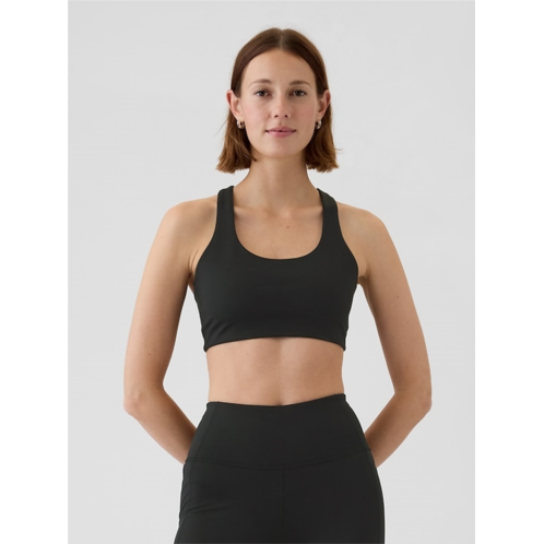 - This sports bra is made with 79% recycled polyester. Compared to virgin materials, using recycled materials helps to reduce resource use and waste.