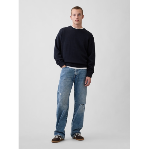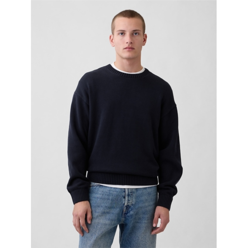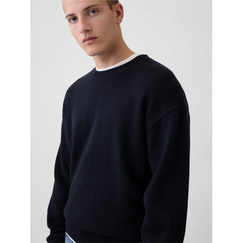 - Soft knit cotton sweater. In a relaxed fit and cropped length.