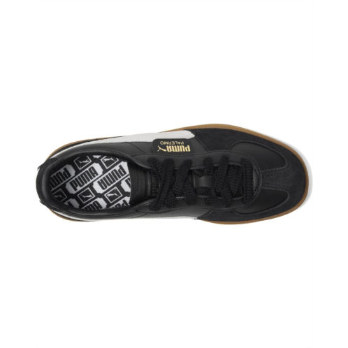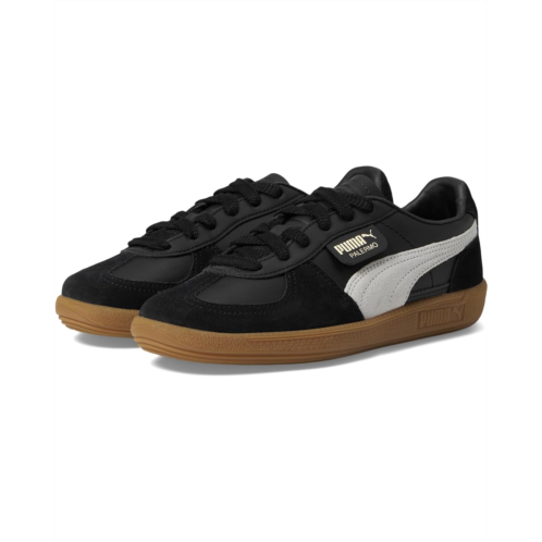 - Let your little one step into the groove wearing the PUMA Kids Palermo. Crafted from plush suede and leather upper, this pair of funky shoes features debossed and foil-printed Puma branding on quarter panel tab and heel cap, while the T-toe construction nods back. Featuring a lightweight tongue and padded collar for a comfy fit, it comes with a cushioned midsole. Finished off with the eye-catching Formstrip to the sidewalls, the Cat window at the heel and the PUMA tag by the laces.