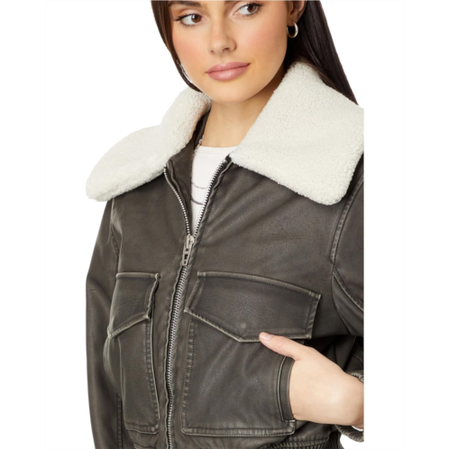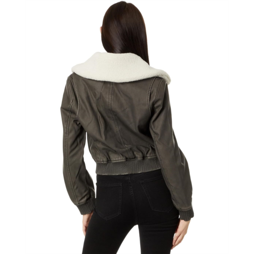 [US] Blank NYC Leather Bomber with Sherpa Collar