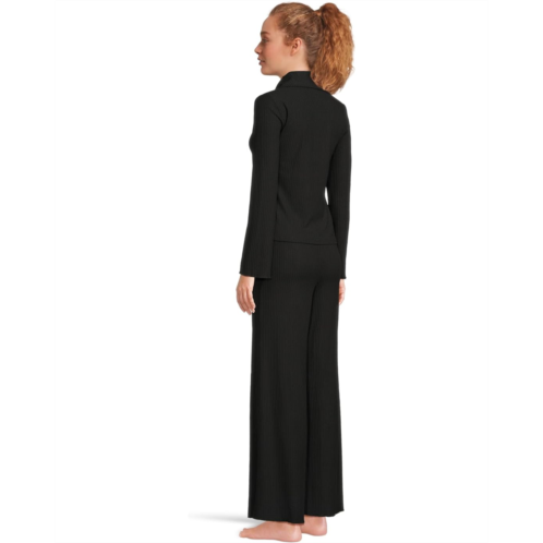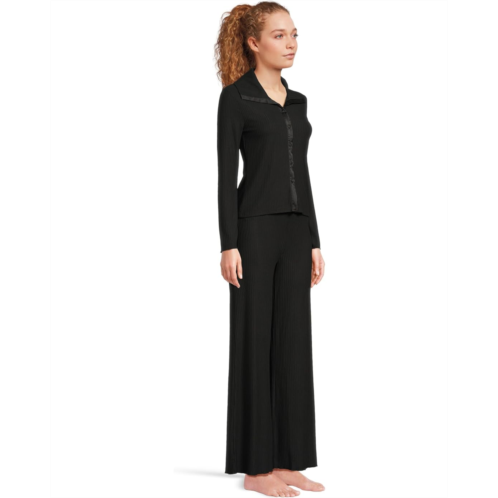 Evoking the cozy sophistication of a Venetian winter, this collection blends soft ribbed modal with silk trims for a refined take on loungewear. The Cosabella Baciami Wrap Top Pant Pajama Set combines cozy comfort with a polished silhouette. The long sleeve top and pant set has a collared neckline with silk detailing and Modal rib jersey pants with a comfortable elasticized waistband.