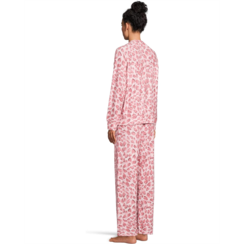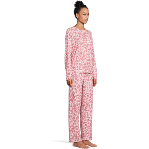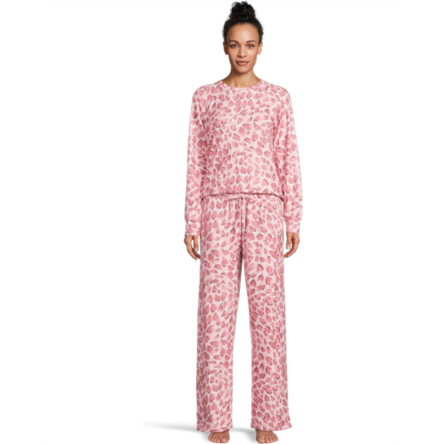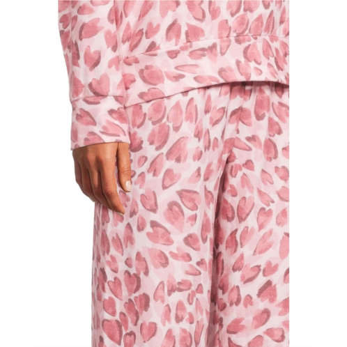 The P.J. Salvage Full of Love PJ Set includes a women's grey long-sleeve PJ shirt and banded PJ pants with a white peace sign heart pattern. Crafted from a durable polyester blend, this printed PJ set is an ideal choice for your everyday wear.