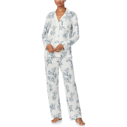 The Lauren Ralph Lauren Long Sleeve Notch Collar Knit PJ Set blends classic tailoring with cozy ease, making every night feel like a retreat. Designed with a chic notch lapel collar, elegant long sleeves, and a button-front closure, this set captures that effortless lounge-to-bed sophistication. A smart chest pocket adds a hint of polish, while the pull-on pajama bottoms keep things simple and relaxed for all-night comfort. Crafted in a soft knit fabric, it drapes beautifully and feels incredibly gentle against your skin, inviting you to unwind in luxury.