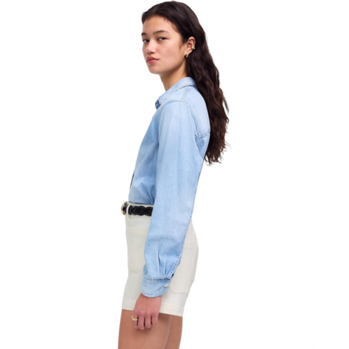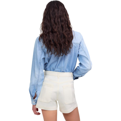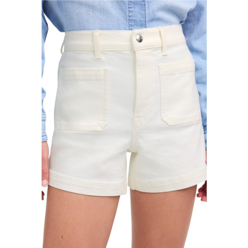 The Madewell White Emmett Shorts - Tile White offer a mid-rise flare with a touch of stretch for comfort and a flattering fit. The two front and back patch pockets add a functional detail, while the zero show-through fabric ensures confidence in every wear.