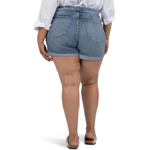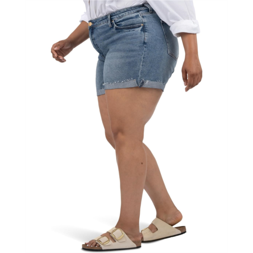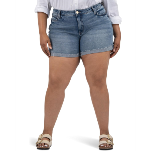 Hit the streets in your chic flamboyance wearing KUT from the Kloth Plus Size Jane High-Rise Short Univen Roll-Up Raw Hem. The high-rise bottomwear features belt loops through the waist, classic five-pocket construction, and rollable frayed hem.