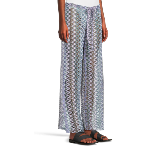 The BECCA Sundown Crochet Split Leg Pants are made from jacquard crochet knit fabric that makes them comfortable to wear all day. Featuring a multicolored zig zag stripe pattern allover, these pull-on pants are designed with an adjustable drawcord waistband and a split leg opening. Ideal for your everyday wear, these striped pants are perfect to pair with your casual looks and styles.