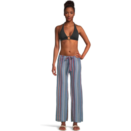 Power up your dressing style wearing the BECCA Waterway Crochet Split Leg Pant Cover-Up. Airy tone-on-tone crochet floats into breezy high side splits in these relaxed drawstring-waist pants.