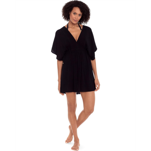 Elevate your swim style with the LAUREN Ralph Lauren Crinkle Rayon Dress featuring a v-neckline crinkle rayon dress with ties and slits at waist on each side and gold hardware on tips of ties.