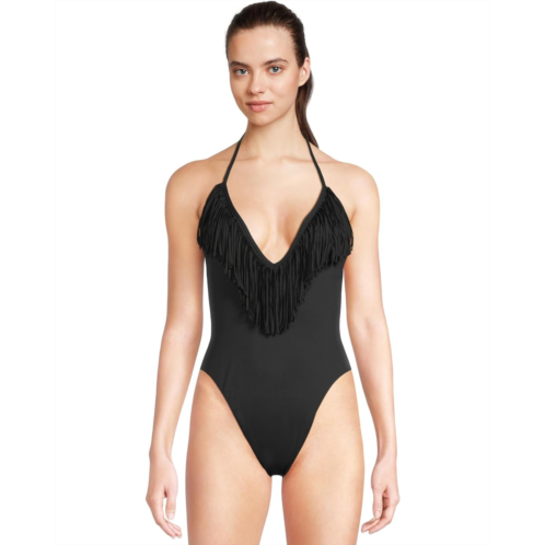 The L*Space Desert Days One-piece Classic is a stunning swimsuit designed to make a statement. With its deep V-neckline adorned with playful fringe details, this one-piece exudes a bohemian charm. The high-cut design and open back create a flattering silhouette, perfect for turning heads at the beach or poolside.