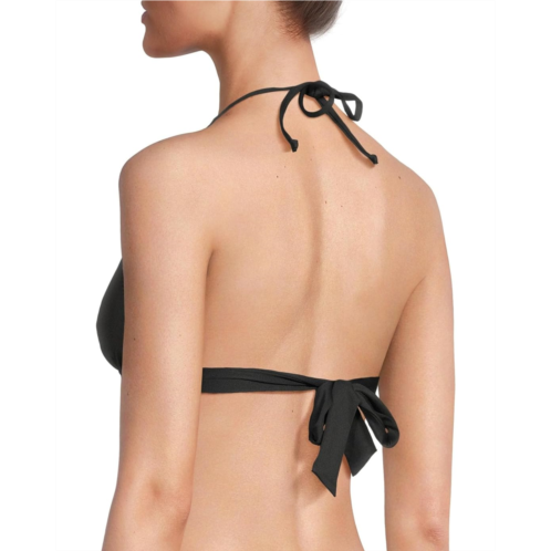 Step into the sea feeling comfortable and looking chic in BECCA Colette Crochet Flower Halter Top. The crochet top features a halter neck tie, removable cups, scallop crochet edging at the neck & underbust, crochet, flower at the center tab, and a back-tie closure.