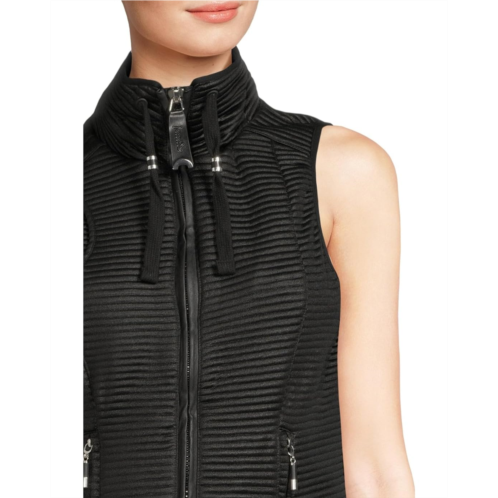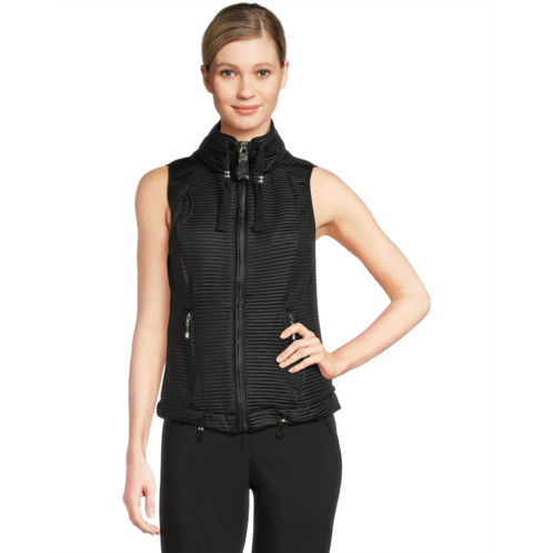 The Jamie Sadock Full Zip Vest is a fashionable yet functional vest for layering on and off the course. It provides a layer of warmth and a layer of sass with the unique style offered. This sleeveless vest features drawstrings at the waistline for added comfort and an adjustable fit. It is styled with a collared neckline, a zippered front closure, and a drawcord hem.