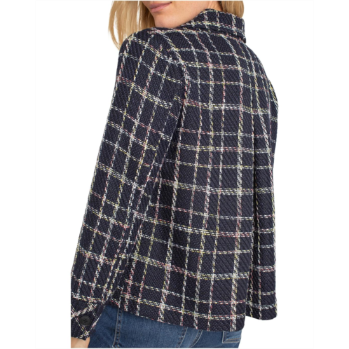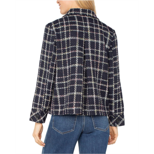 This tattersall plaid woven jacquard pleat back jacket features a beautiful mix of ocean hues. The mix of tones becomes a unique and versatile piece that you'll want to wear again and again. Designed with a sleek front and a statement pleated back, this jacket blends structure with softness for a look that's effortlessly sophisticated.