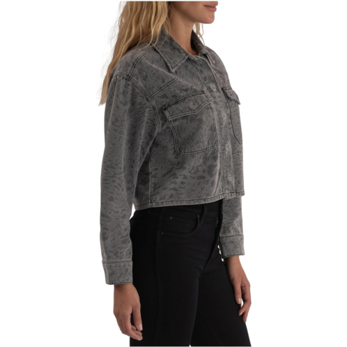 The KUT from the Kloth Miley Button Front Jacket With Patch Pockets is designed with a structured, cropped silhouette. It features a buttoned front closure and dual button-flap chest pockets that add both function and style.