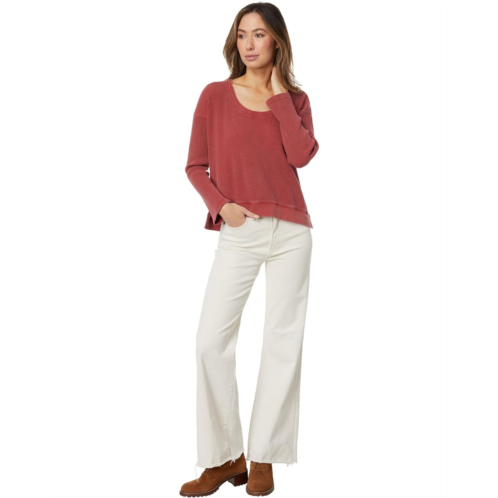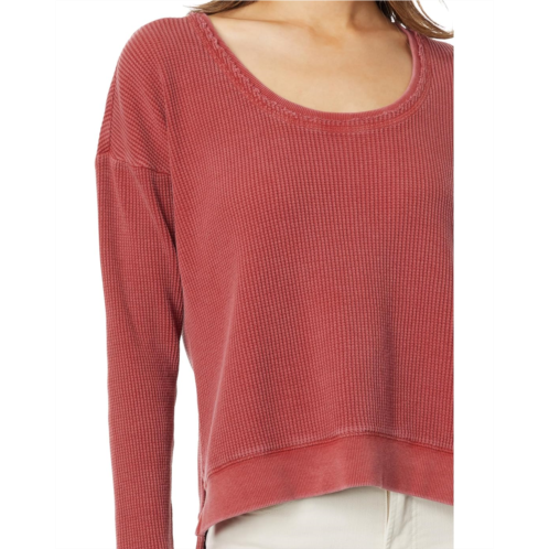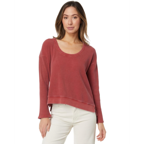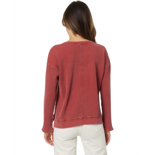 [US] Mod-o-doc Washed Waffle Long Sleeve Open Neck Top