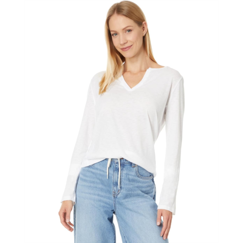 Look effortlessly chic wearing the Michael Stars Hailie Rib Mixed Tee. With a trendy notched V-neckline, cozy long sleeves, and a timeless straight hem, this versatile top is a must-have for any fashion-forward wardrobe.
