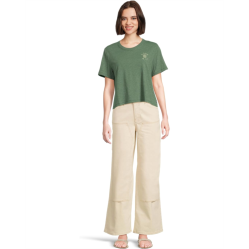 Designed for your warm weather adventures and rides, the Toad&Co Boundless Jersey Short Sleeve Crew is crafted from slub jersey fabric that is garment dyed to offer a vintage look. The groovy rainbow screen print graphics on the back gives it an eye-catching appeal. This cotton tee features UPF 50+ protection that protects your skin against harmful sun rays. The short sleeves, dropped shoulders, and crew neckline with ribbed trim offer added comfort. Match your casual styles and laid-back looks with this printed tee.
