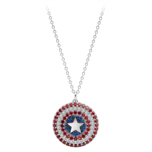Protect yourself from a fashion faux pas when you accessorize with a sterling silver pendant of Captain America's shield. The glittering disc features a platinum finish and is detailed with blue, red, and clear cubic zirconia for an accent that will save any look.