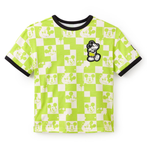 Forever an original, Mickey Mouse claims the title with the embroidered patch at the sleeve of this vibrant, neon t-shirt. The neon checkerboard pattern of this ringer tee features various Mickey Mouse icons and a smiling embroidered applique on the chest to instantly cheer on your day.