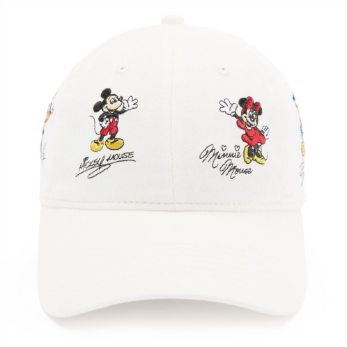 Hot dog! Mickey and all his pals are embroidered appliques accompanied by their autograph ''signatures'' on this traditional twill baseball cap that's sure to hit a home run with Disney fans by any (seventh inning) stretch of imagination!