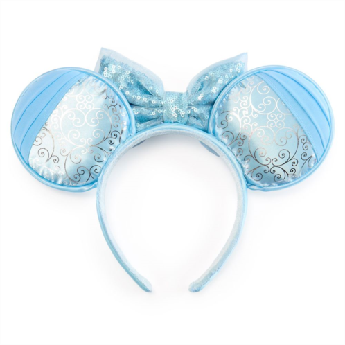 With a ''Bibbidi-Bobbidi-Boo'' your look will be transformed while wearing this glamorous ear headband evoking Cinderella's elegant ballgown. A blue sequined bow with sheer organza covering and satin ears with shimmering silver foil filigree pay homage to one of our most beloved heroines.