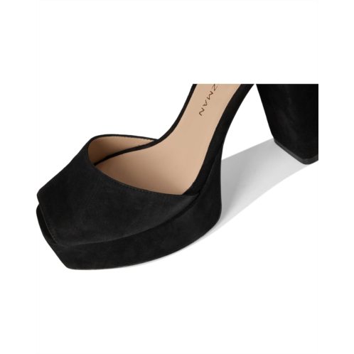 - The Stuart Weitzman Sabrina Platform Sandals are a bold yet refined statement piece, crafted in supple suede with a luxurious polyurethane insole for comfort. Elevated on a block heel balanced by a front platform, they deliver dramatic height while remaining wearable. The design features a peep square toe and a buckle adjustable ankle strap for a secure fit.