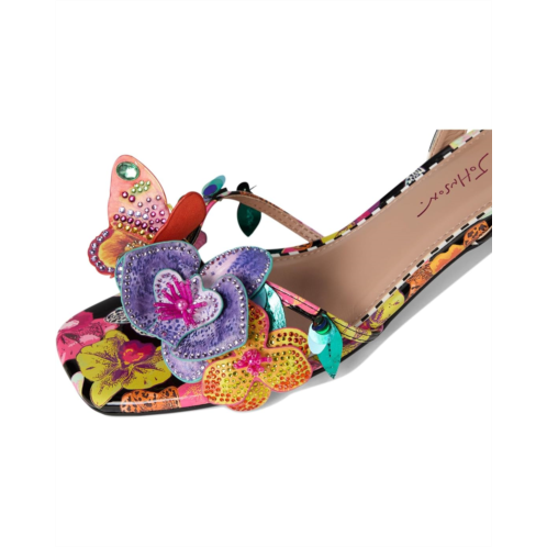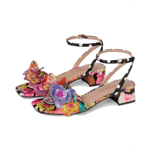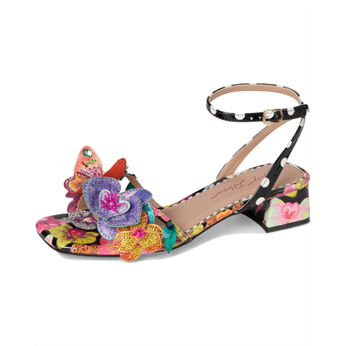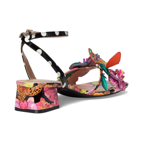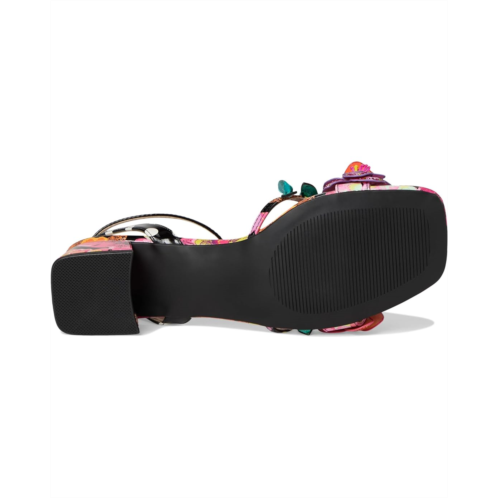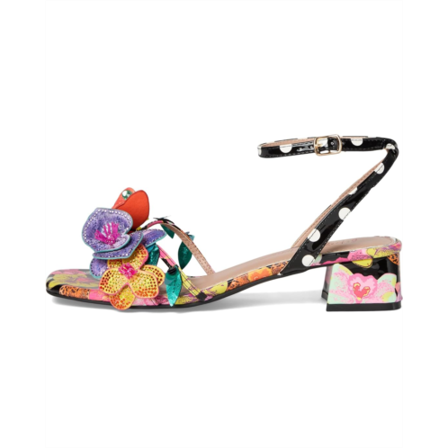- The Blue by Betsey Johnson Maranda sandals are styled with a bright floral print and floral embellishment. These printed sandals are made of a rubber insole and faux leather lining. The polyvinyl chloride upper features an ankle strap with an adjustable buckle closure for a perfect fit. These heeled sandals are perfect to pair with different outfits and styles.