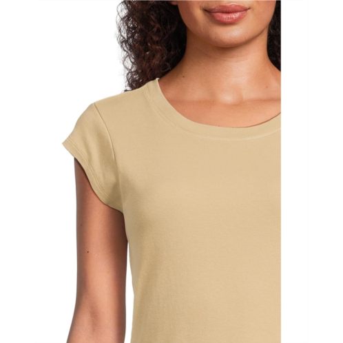 The Mod-o-doc Cap Sleeve Crew Neck Slim Tee blends both style and comfort for effortless, everyday wear. The pull-on style tee features a crew neck, cap sleeves, and a straight hem.