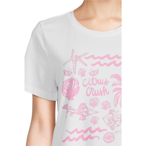 The Lilly Pulitzer Barreto Knit Top is an everyday essential featuring a straight fit, crew neckline, and short sleeves. The custom front artwork brings a pop of personality to this versatile tee.