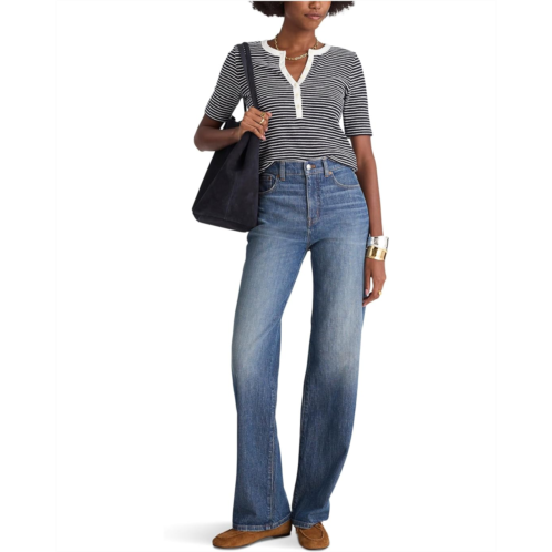 A beautiful allover striped print and classic silhouette, make the Madewell Elbow Sleeve Henley Top a wardrobe essential. The pull-on style top features a henley neck with half-button closure, short sleeves, and a straight hem.