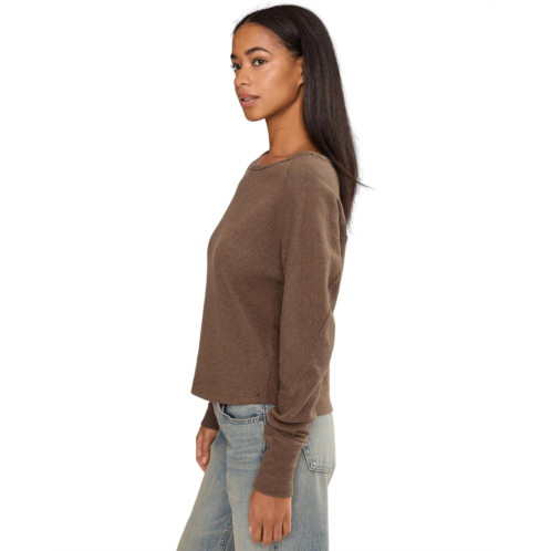 A cozy base for endless outfitting, this Free People Jess Long Sleeve pullover is featured in thermal fabrication with a flattering boat neckline and slouchy dolman sleeves. It has thermal-knit textured cotton-blend construction with a seamed details and elongated sleeve cuffs.